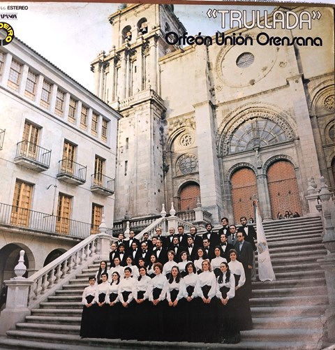 A imaxe que acompaña esta achega, é a portada do primeiro LP da nosa coral. Tivemos a fortuna de formar parte dela naquela altura. Estamos posando nas escaleiras da fachada principal da Catedral de Ourense, recen inauguradas. Gravaramos o disco no interior da propia catedral o 7 de maio de 1980. Estivera con nós o cantante Suso Vaamonde, director de produción do selo discográfico DIAL LIMOEIRO. A foto fixéraa Mazaira e o son e misturas Toni Martínez. O disco incluía seis temas do noso director Salgado Valdés. Outrosí seis temas de clásicos: Bach, Halffter, Ketelbey, Meldelssohn, Guerrero e Nadal Puig. Fora todo un éxito que mesmo nos deu moita proxección pública. Ao ter un vinilo gravado, podíase emitir pola radio, un medio fundamental para a súa difusión na altura de 1980. Logo gravariamos outros dous dos que falaremos en chegando xunto con outras fasquías. Beizón!